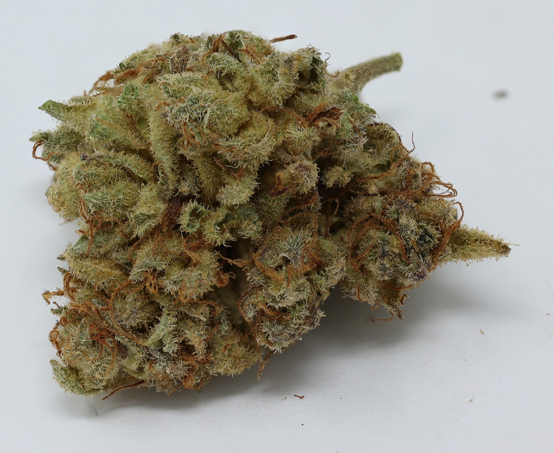 Mendo Lavender is a hard to find strain, it's bud brings on the potency, with a THC level that bottoms out at about 19-20% on average and dazzling full bodied effects. Mendo Lavender comes on pretty quickly after your first few hits, filling your mind and body with a happy tingly effect. This tingle quickly turns into a full on buzz, washing over you physically and pulling you down into a heavy couch-locked body high. As you lose your physical form to happy sedation, your mind will lift into a state of hazy euphoria that leaves you unable to focus and pretty sleepy at times. Thanks to these nighttime effects and its high THC level, Mendo Lavender is said to be perfect for treating conditions such as chronic pain, inflammation, muscle spasms or cramps, and chronic stress. This bud has a sweet vanilla caramel candy flavor and a fresh earthy aroma to match. Mendo Lavender buds have lumpy round minty green nugs with furry orange hairs and a thick frosty coating of tiny bright white crystal trichomes.